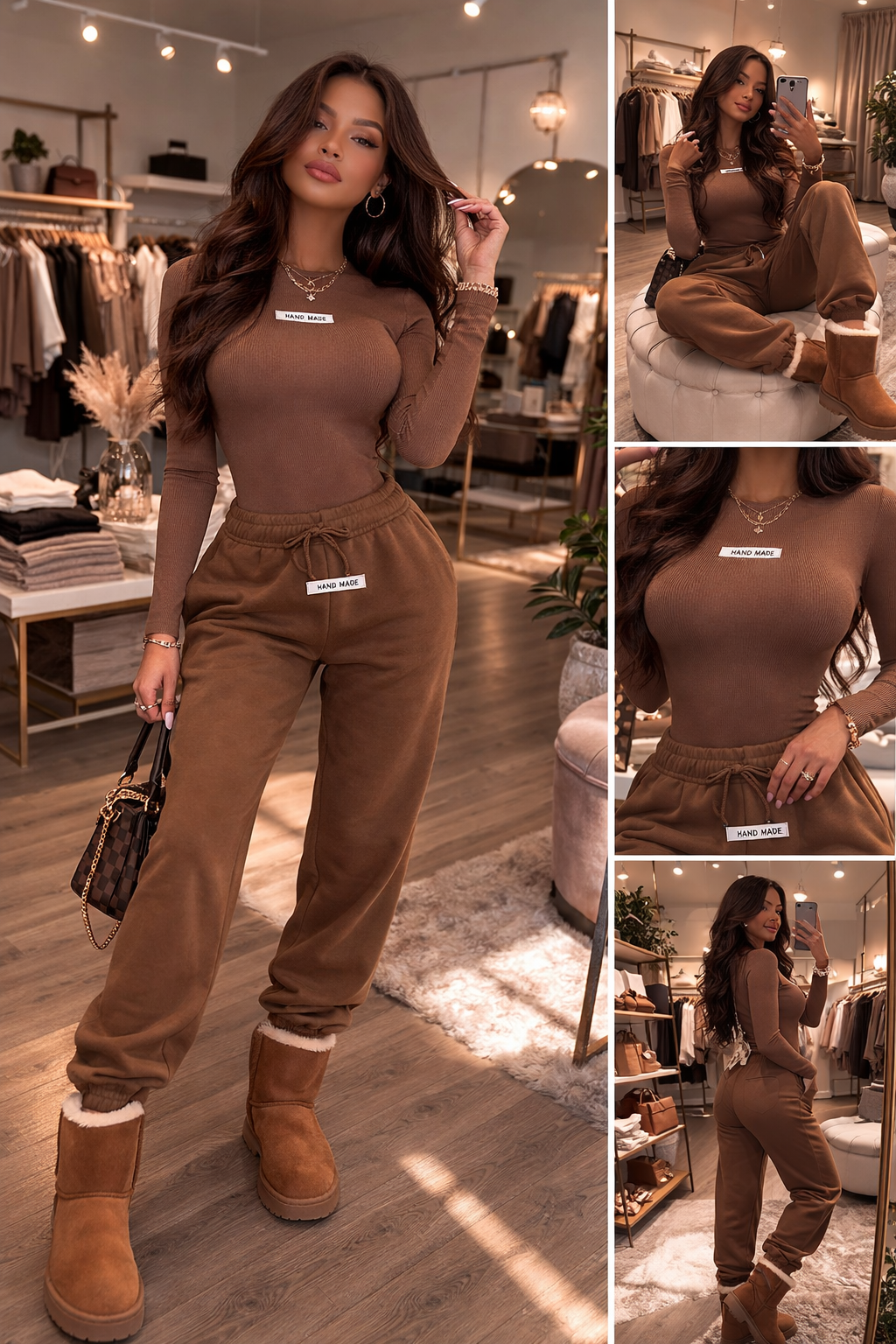 Handmade Bodysuit And Jogger Set-Brown
