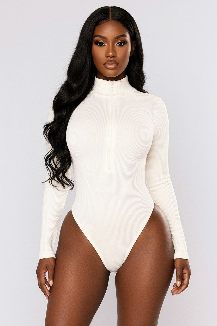 Sasha Fitted Zip-Up Bodysuit-Mocha